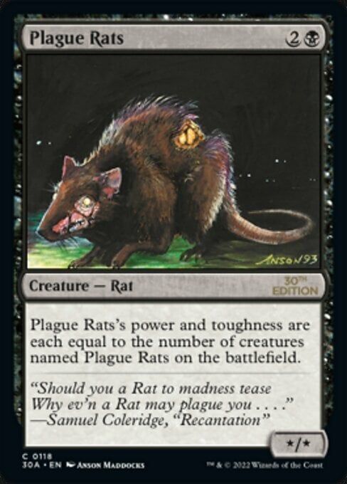 Plague Rats's power and toughness are each equal to the number of creatures named Plague Rats on the battlefield.
