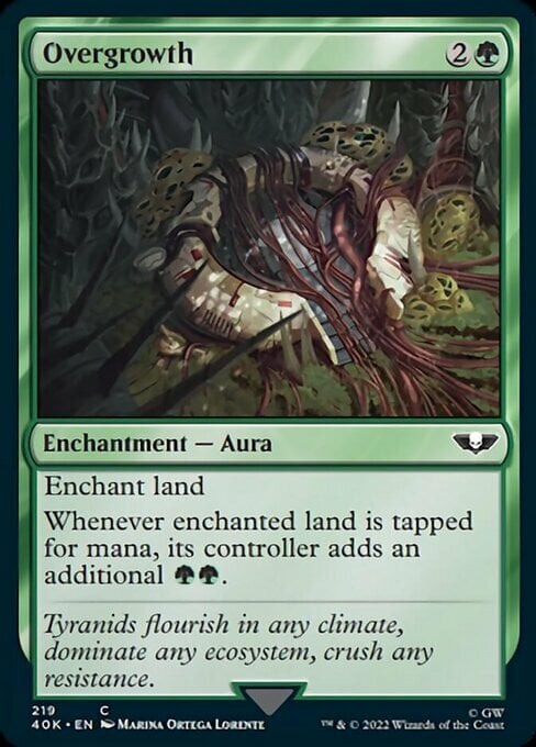Whenever enchanted land is tapped for mana, its controller adds an additional {G}{G}.
