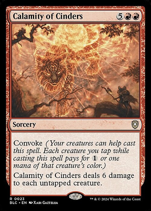 Calamity of Cinders deals 6 damage to each untapped creature.