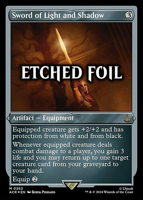 Equipped creature gets +2/+2 and has protection from white and from black.