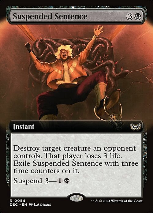 Destroy target creature an opponent controls. That player loses 3 life. Exile Suspended Sentence with three time counters on it.
