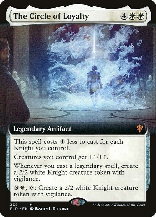 Whenever you cast a legendary spell, create a 2/2 white Knight creature token with vigilance.
