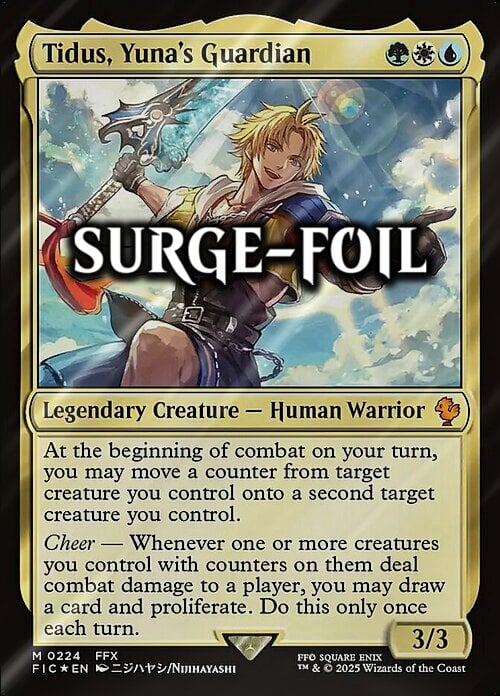 Cheer — Whenever one or more creatures you control with counters on them deal combat damage to a player, you may draw a card and proliferate. Do this only once each turn.