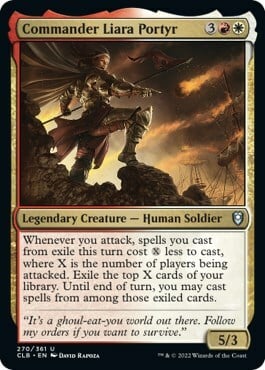Whenever you attack, spells you cast from exile this turn cost {X} less to cast, where X is the number of players being attacked. Exile the top X cards of your library. Until end of turn, you may cast spells from among those exiled cards.