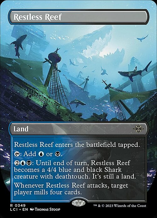 {2}{U}{B}: Until end of turn, this land becomes a 4/4 blue and black Shark creature with deathtouch. It's still a land.