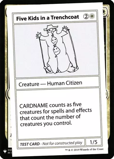 Five Kids in a Trenchcoat counts as five creatures for spells and effects that count the number of creatures you control.