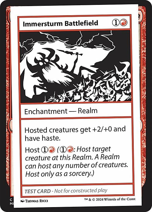 Host {1}{R} ({1}{R}: Host target creature at this Realm. A Realm can host any number of creatures. Host only as a sorcery.)