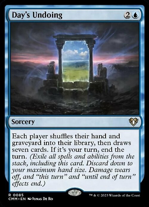 Each player shuffles their hand and graveyard into their library, then draws seven cards. If it's your turn, end the turn. (Exile all spells and abilities from the stack, including this card. Discard down to your maximum hand size. Damage wears off, and "this turn" and "until end of turn" effects end.)