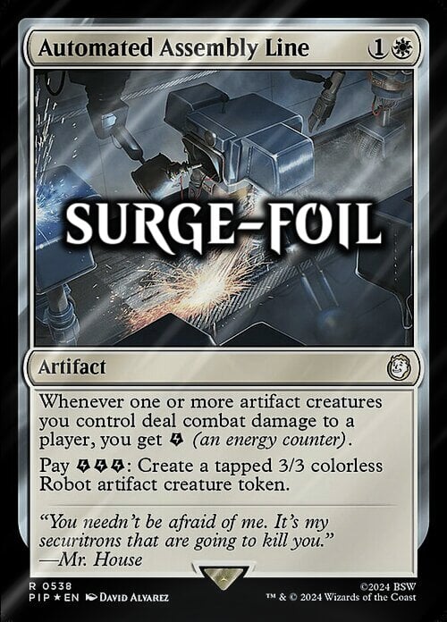 Whenever one or more artifact creatures you control deal combat damage to a player, you get {E} (an energy counter).