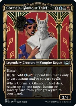 When Cormela dies, return up to one target instant or sorcery card from your graveyard to your hand.