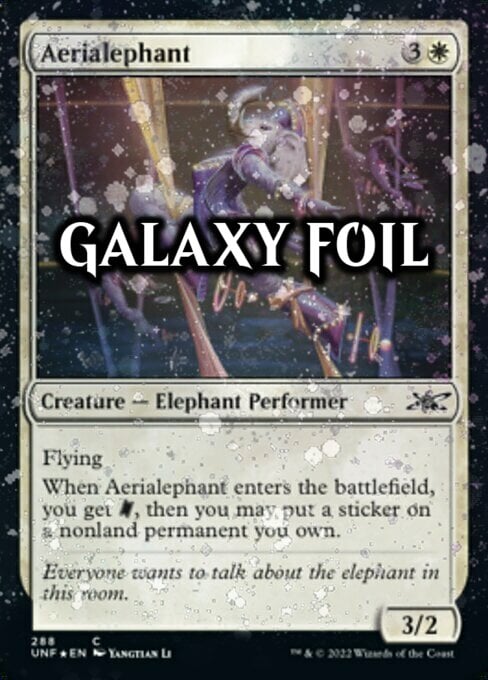 When Aerialephant enters, you get {TK}, then you may put a sticker on a nonland permanent you own.