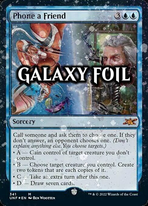 Call someone and ask them to choose one. If they don't answer, an opponent chooses one. (Don't explain anything else. You choose targets.)