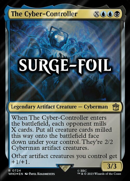 When The Cyber-Controller enters, each opponent mills X cards. Put all creature cards milled this way onto the battlefield face down under your control. They're 2/2 Cyberman artifact creatures.