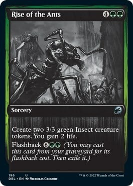Create two 3/3 green Insect creature tokens. You gain 2 life.