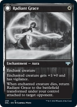 When enchanted creature dies, return this card to the battlefield transformed under your control attached to target opponent.