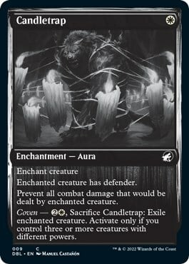 Coven — {2}{W}, Sacrifice this Aura: Exile enchanted creature. Activate only if you control three or more creatures with different powers.