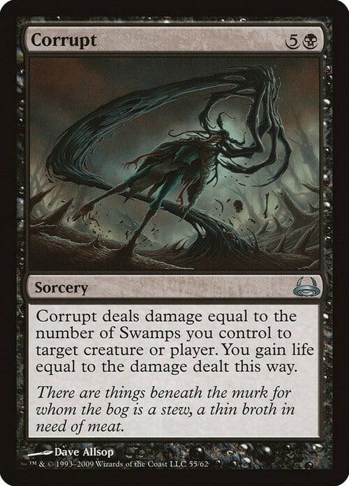 Corrupt deals damage to any target equal to the number of Swamps you control. You gain life equal to the damage dealt this way.