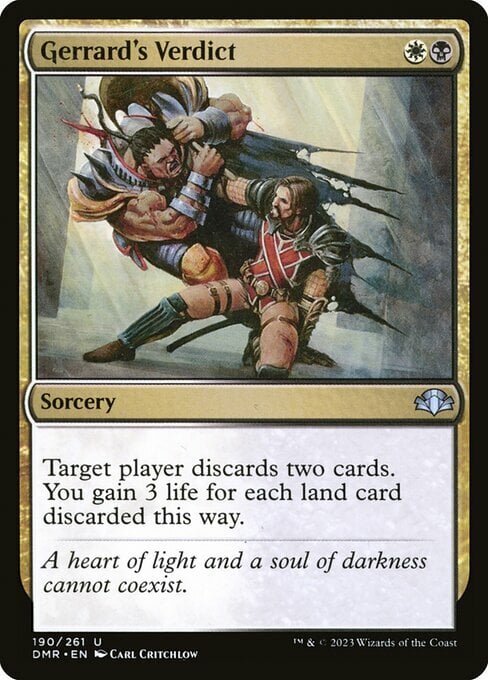 Target player discards two cards. You gain 3 life for each land card discarded this way.