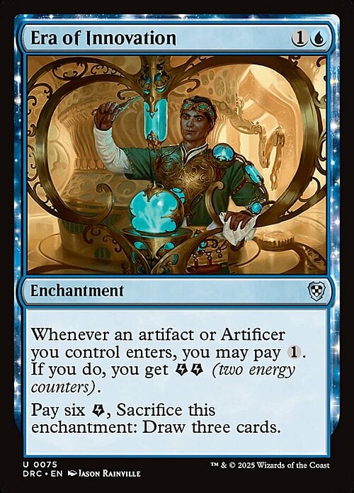 Whenever an artifact or Artificer you control enters, you may pay {1}. If you do, you get {E}{E} (two energy counters).