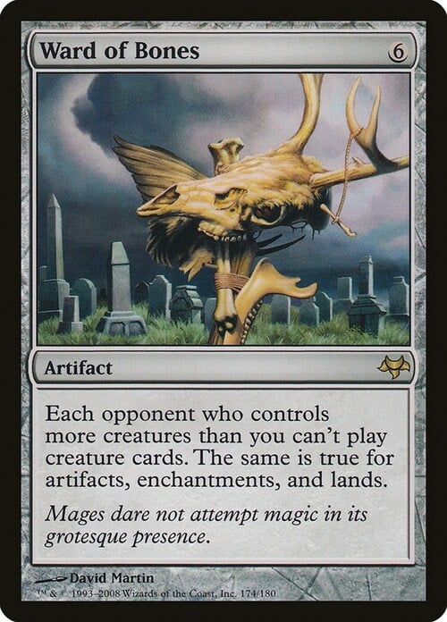 Each opponent who controls more creatures than you can't cast creature spells. The same is true for artifacts and enchantments.