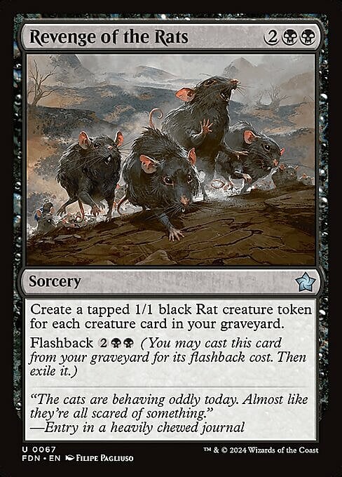 Create a tapped 1/1 black Rat creature token for each creature card in your graveyard.