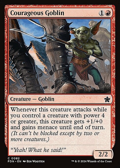 Whenever this creature attacks while you control a creature with power 4 or greater, this creature gets +1/+0 and gains menace until end of turn. (It can't be blocked except by two or more creatures.)
