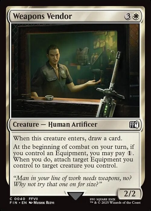 "Man in your line of work needs weapons, no? Why not try that one on for size?"