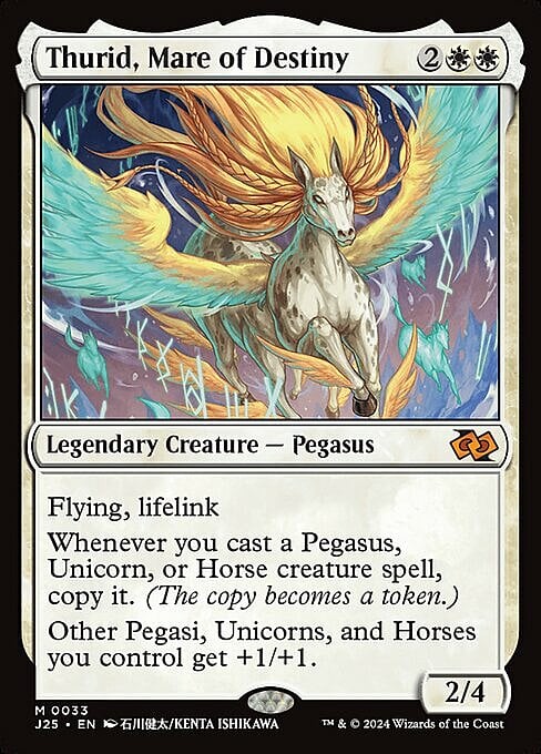Whenever you cast a Pegasus, Unicorn, or Horse creature spell, copy it. (The copy becomes a token.)