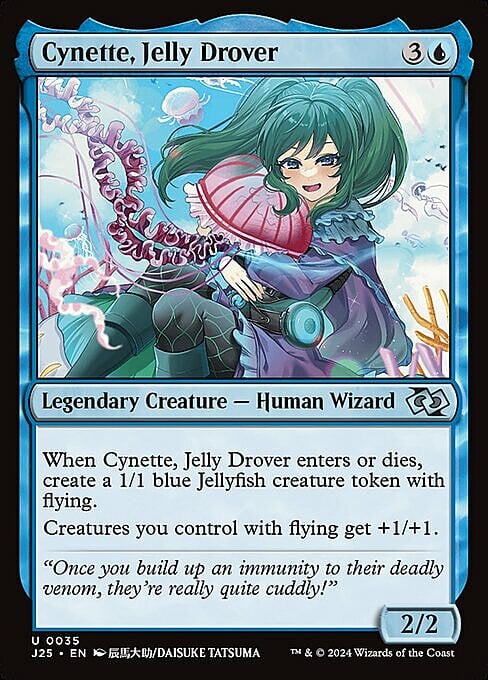 When Cynette enters or dies, create a 1/1 blue Jellyfish creature token with flying.