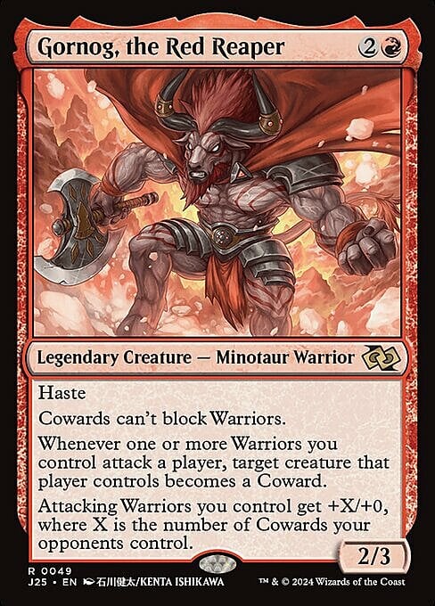 Whenever one or more Warriors you control attack a player, target creature that player controls becomes a Coward.