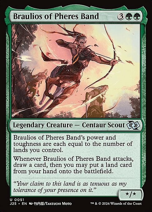 Whenever Braulios attacks, draw a card, then you may put a land card from your hand onto the battlefield.