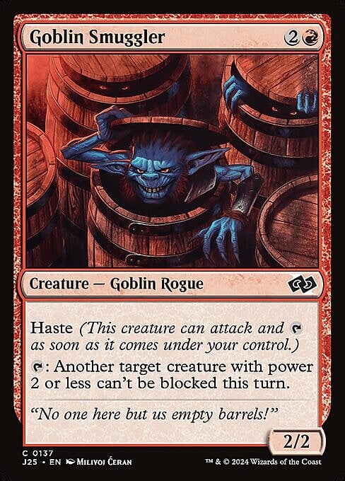 Haste (This creature can attack and {T} as soon as it comes under your control.)