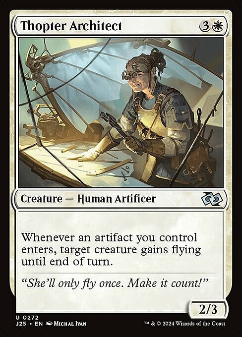 Whenever an artifact you control enters, target creature gains flying until end of turn.