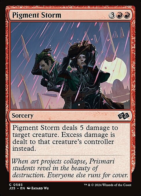 Pigment Storm deals 5 damage to target creature. Excess damage is dealt to that creature's controller instead.