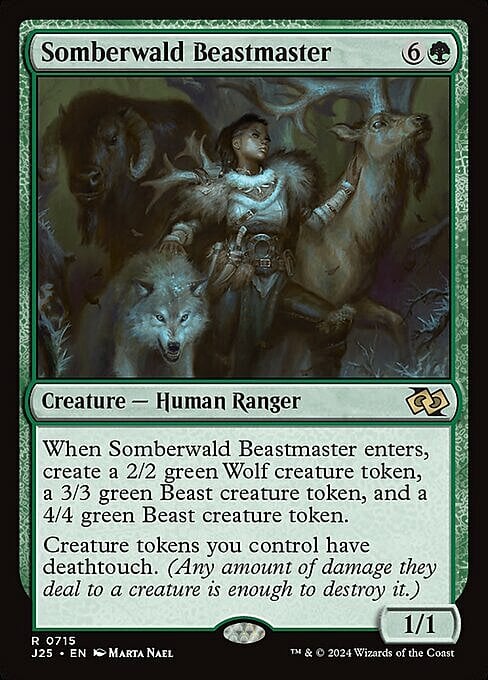 When this creature enters, create a 2/2 green Wolf creature token, a 3/3 green Beast creature token, and a 4/4 green Beast creature token.