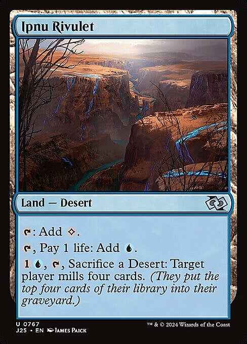 {1}{U}, {T}, Sacrifice a Desert: Target player mills four cards. (They put the top four cards of their library into their graveyard.)