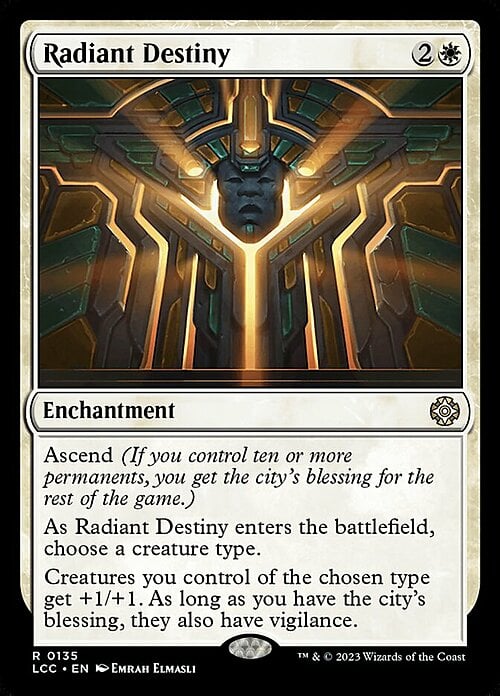 Creatures you control of the chosen type get +1/+1. As long as you have the city's blessing, they also have vigilance.