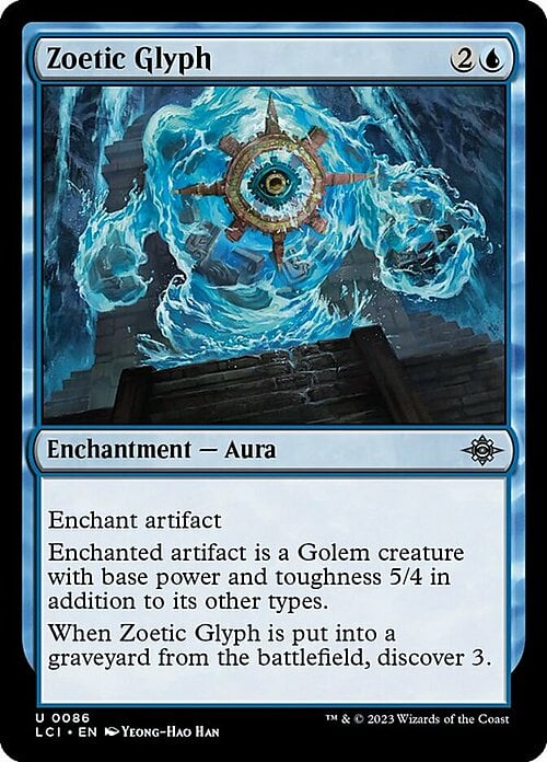 When this Aura is put into a graveyard from the battlefield, discover 3.