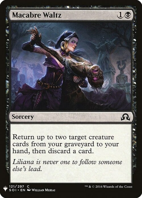 Return up to two target creature cards from your graveyard to your hand, then discard a card.