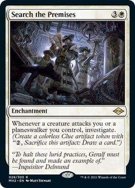 Whenever a creature attacks you or a planeswalker you control, investigate. (Create a Clue token. It's an artifact with "{2}, Sacrifice this token: Draw a card.")