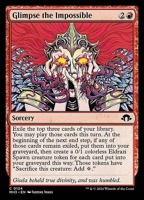 Exile the top three cards of your library. You may play those cards this turn. At the beginning of the next end step, if any of those cards remain exiled, put them into your graveyard, then create a 0/1 colorless Eldrazi Spawn creature token for each card put into your graveyard this way. Those tokens have "Sacrifice this token: Add {C}."