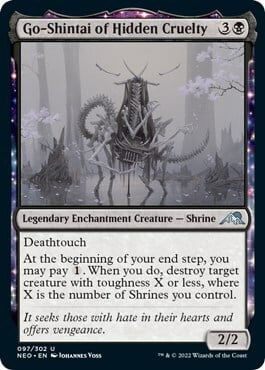 At the beginning of your end step, you may pay {1}. When you do, destroy target creature with toughness X or less, where X is the number of Shrines you control.