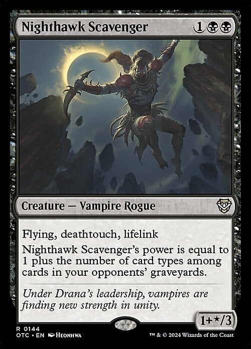 Nighthawk Scavenger's power is equal to 1 plus the number of card types among cards in your opponents' graveyards.
