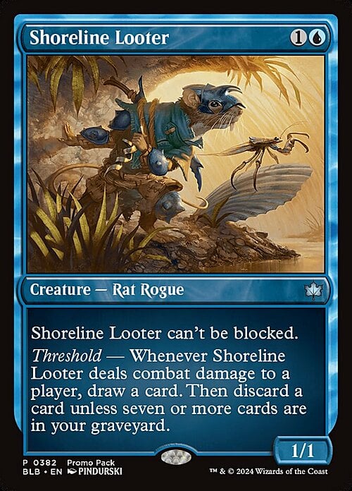 Threshold — Whenever this creature deals combat damage to a player, draw a card. Then discard a card unless seven or more cards are in your graveyard.