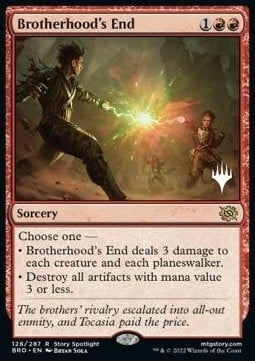 • Brotherhood's End deals 3 damage to each creature and each planeswalker.