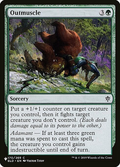 Put a +1/+1 counter on target creature you control, then it fights target creature you don't control. (Each deals damage equal to its power to the other.)