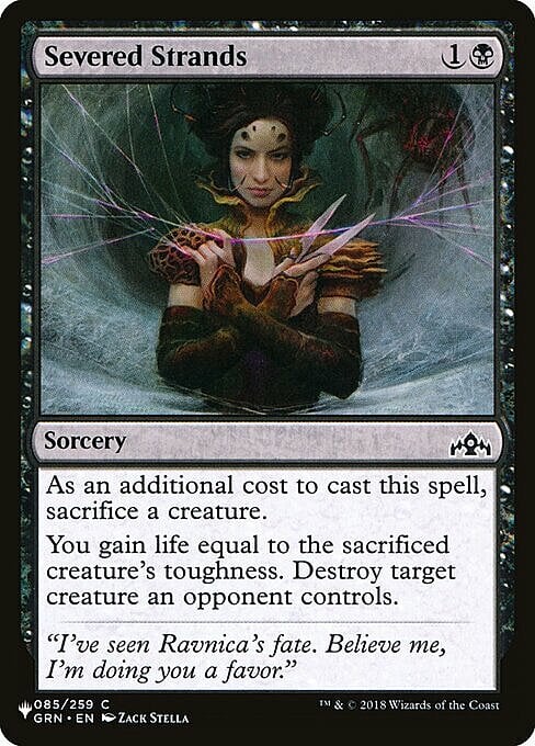 You gain life equal to the sacrificed creature's toughness. Destroy target creature an opponent controls.