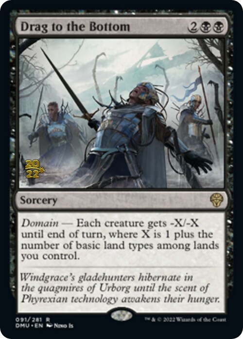 Domain — Each creature gets -X/-X until end of turn, where X is 1 plus the number of basic land types among lands you control.