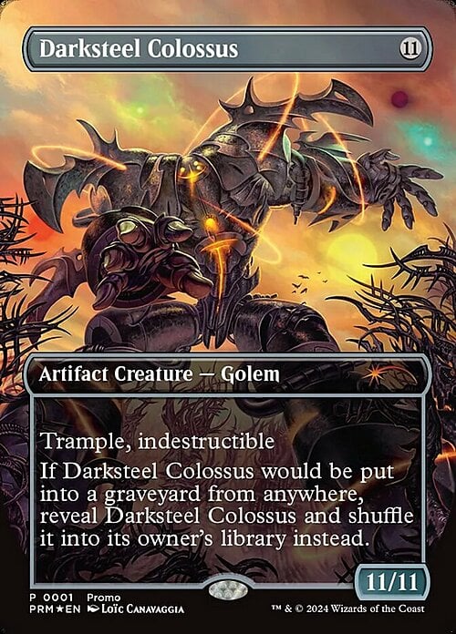 If Darksteel Colossus would be put into a graveyard from anywhere, reveal Darksteel Colossus and shuffle it into its owner's library instead.