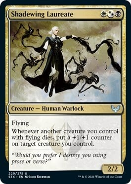 Whenever another creature you control with flying dies, put a +1/+1 counter on target creature you control.